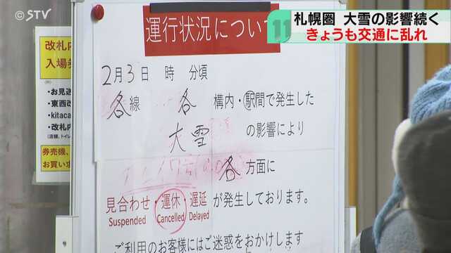 【最新】JRは405本運休 札幌圏は午後1時ごろまで運転できない見込み 路線バスも運休続く