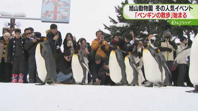 雪の上をよちよち…「すごく好きで」佐賀県から来た人も ペンギンの散歩に多くの人 旭山動物園