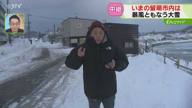 【中継】何度も雪で周りが見えなくなり… 路面は凍結、海には白波 強い風が吹く北海道・留萌市