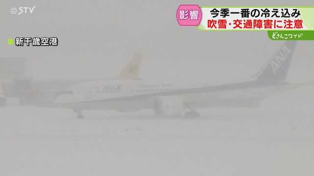 新千歳空港もホワイトアウト 欠航相次ぐ…今季一番の寒さ 道内173地点で真冬日 交通障害に注意
