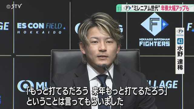 ファイターズ“ミレニアム世代”の年俸大幅アップ!推定5000万円の水野選手「圧倒的に打てるように頑張りたい」