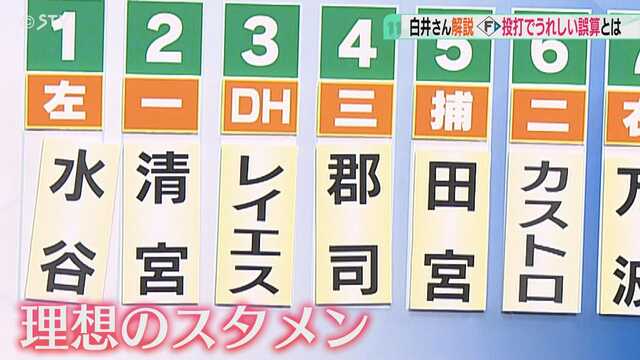 (白井一幸さん)「(カストロ選手は)守備の柔らかさだったり、スローイングの安定性や肩の強さがある。ダブルプレーがとれる2塁手という風に一目で感じました。バッティングは思った以上にパンチ力もあるし、状況に応じたバッティングもできる。(カストロ選手の活躍は)キャンプやオープン戦通して一番のうれしい誤算の1つ」