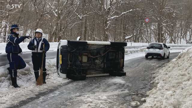 路面凍結…車7台が絡む多重事故 1人搬送 北海道千歳市