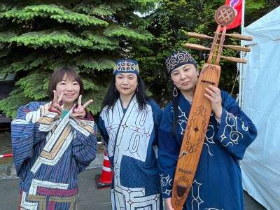 令和4年度(2022年度)は、阿寒湖畔にお住まい、下倉絵美さん(真ん中)が講師です!同じく阿寒から妹の郷右近富貴子さん(左)が協力者として一緒に講座を支えて下さいます。2人は姉妹で、幼い頃からアイヌ文化に触れて育ち、「カピウ&アパッポ」というグループ名で、アイヌのウポポ(民謡)を歌う活動を続けています。