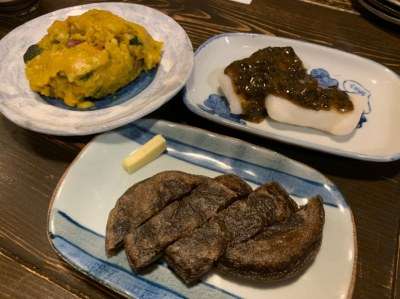 12月11日放送 レッスン37では、アイヌ料理の店ポロンノへ😋黄色いのがラタㇱケプ、右奥がコンブシト、手前がポッチェイモ