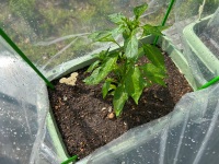 「シシトウ」「ナス」「トマト」「大葉」「オクラ」の苗を植え