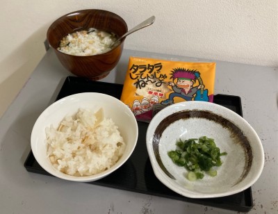 マイマイ作、タラタラしてんじゃねーよ入りの炊き込みご飯とお茶漬け -