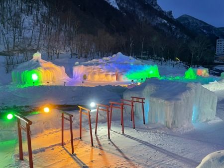 「層雲峡温泉 氷瀑まつり」は3月13日(日)まで開催しています。週末だけではなく2月4日(金)~27日(日)まで