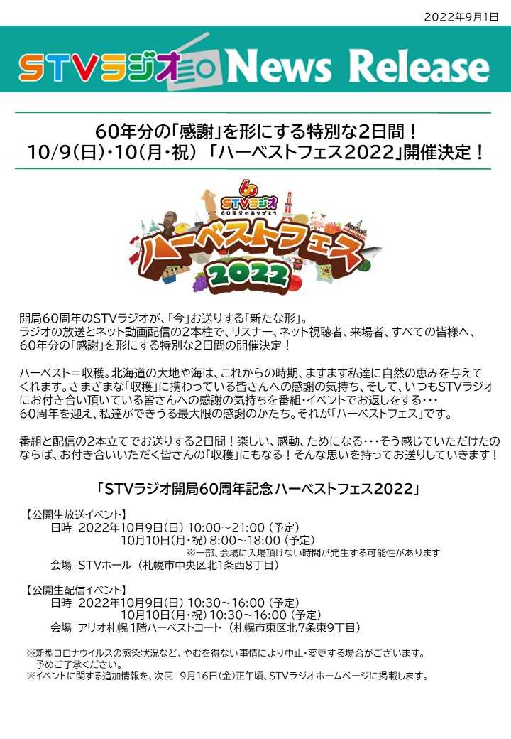 10月9日(日)・10日(月・祝)「STVラジオ開局60周年記念 ハーベストフェス2022」開催決定!