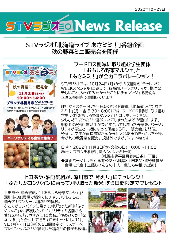 北海道ライブ あさミミ! 秋の野菜ミニ販売会