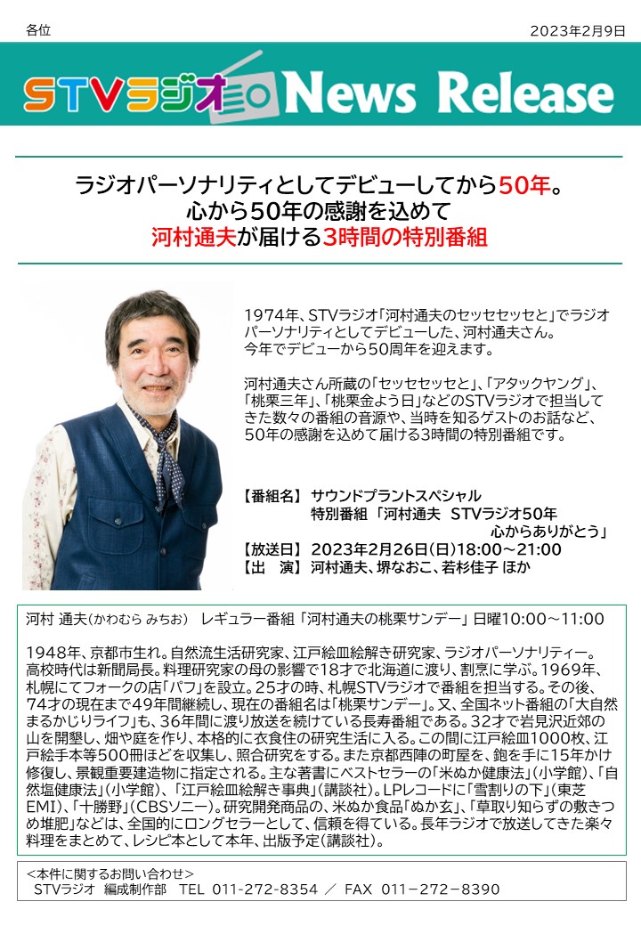 特別番組「河村通夫 STVラジオ50年 心からありがとう」
