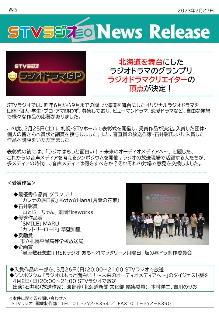 ラジオドラマグランプリ 受賞作品決定