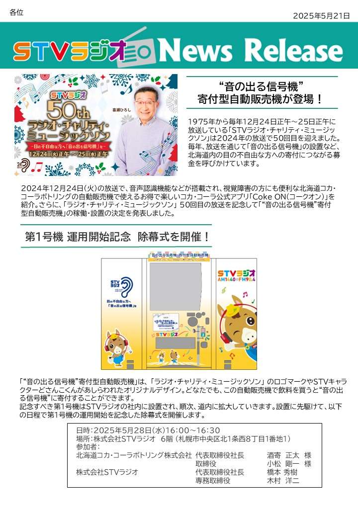 “音の出る信号機” 寄付型自動販売機が登場!