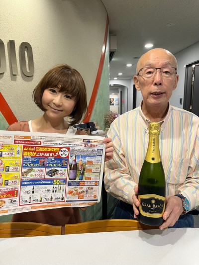 おすすめは「カヴァ グランバロン ブリュット」。カヴァはシャンパンと同じ製法で作る、スペインのスパークリングワイン。辛口ですっきりエレガントな味わい。セイコーマートの辛口スパークリングワインで人気ナンバーワンなんです!本体価格698円、1本税込767円…なんですが、この価格で買えるのは9月いっぱい、今週の土曜日までです!