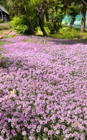 タイムも一面に広がり、ふかふかのピンクの絨毯のようです。