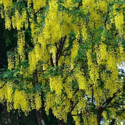黄色い藤の花のように見えますが、名前は金の鎖で、キングサリ。