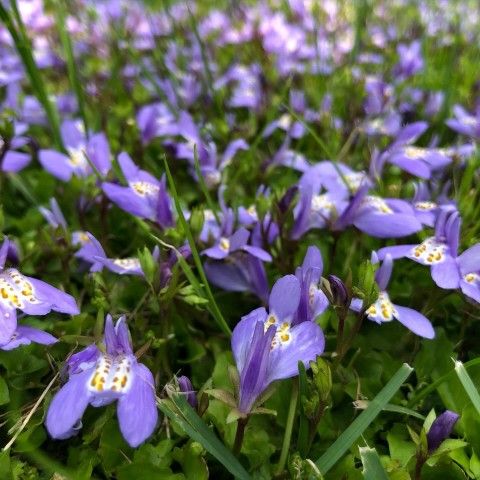 色付いて見えるのは、ムラサキサギゴケの花です。
