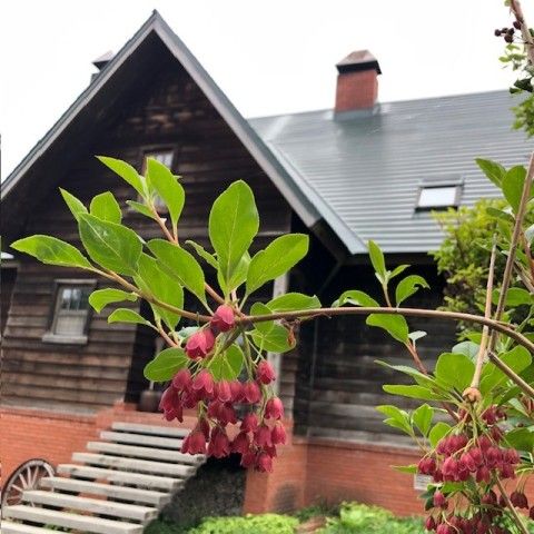 愛らしい紅花のドウダンツツジも咲いている、美流渡のお庭です。