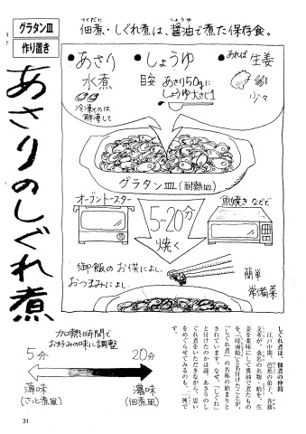 グラタン皿であさりのしぐれ煮 6/1(日) ふきサラダ 6/15(日) グラタン皿でみそおでん 2025年6月8日(日) グラタン皿であさりのしぐれ煮 あさりの水煮(缶詰でも冷凍でも) グラタン皿にいっぱい入れて、 お醤油をくるくるくるくる〜ぐらい。 (あさり50gにお醤油大さじ1、お好みで) あれば生姜少々。 オーブントースターや魚焼きロースターなどで 5〜20分ほど焼く。 ※時間を長く焼くとしっかりとした佃煮になります。 常備菜におつまみに♪ 6月16日午前5時 配信終了 ※再生開始より24時間以内であれば何度でもお楽しみ頂けます。 6/1(日) ふきサラダ 6/15(日) グラタン皿でみそおでん
