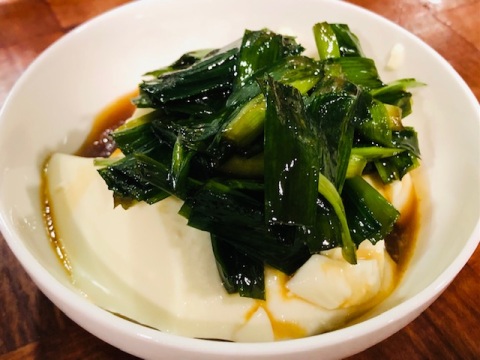「塩パラニラ」柔らかいニラはお湯かけて30秒ほど置き、