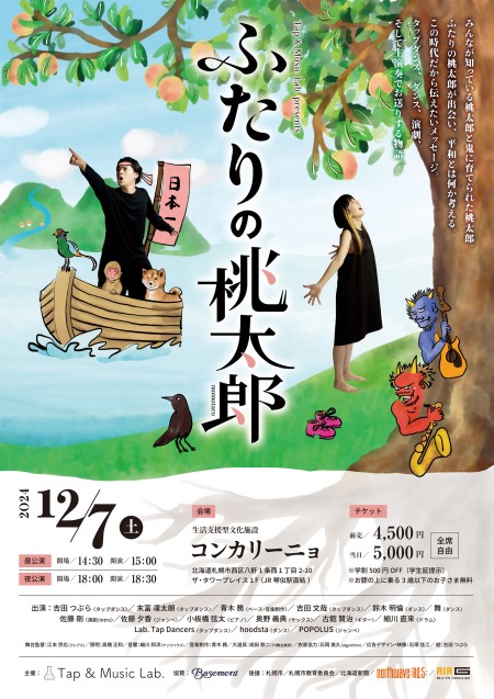 12/7(土)吉田つぶらプロデュースの舞台「ふたりの桃太郎」☺つぶら先生「タップダンサーにダンサー、ミュージシャン、演劇を加え、一つの物語を作り上げるエンターテイメントです!」