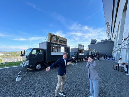 吉川のりお&田村みなみはエスコン2階の新スポット「裏路地ラーメンテラス」へ🍜