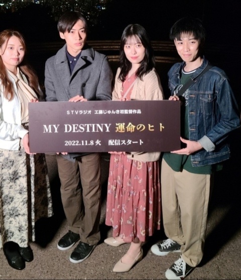 工藤じゅんき初映画監督作品クランクアップ! 10/14(金) 工藤じゅんき初映画監督作品 いよいよクランクイン! 10/27(木) 工藤じゅんき初映画監督作品 主題歌 2022年10月20日(木) 「MY DESTINY〜運命のヒト」 工藤じゅんき初監督作品 「「MY DESTINY〜運命のヒト」 撮影が無事クランクアップ マサキ役 小島佳大さん ナナ役・渡辺ひかるさん ユウキ役 中村瑠来さん カンナ役 高山夏姫さん オーディションで選ばれた4人の迫真の演技! 「MY DESTINY〜運命のヒト」 公開は十人十色HPで 11月8日配信スタートです 10/14(金) 工藤じゅんき初映画監督作品 いよいよクランクイン! 10/27(木) 工藤じゅんき初映画監督作品 主題歌