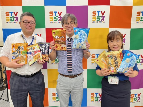 きょうは岩塚製菓北海道支店長代理・服部さんと、おなじみ渡辺さんがスタジオに来てくださいました!