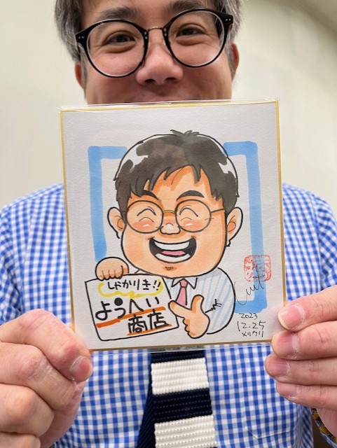 その似顔絵を描いてくれた似顔絵師「まつみ」さんと、