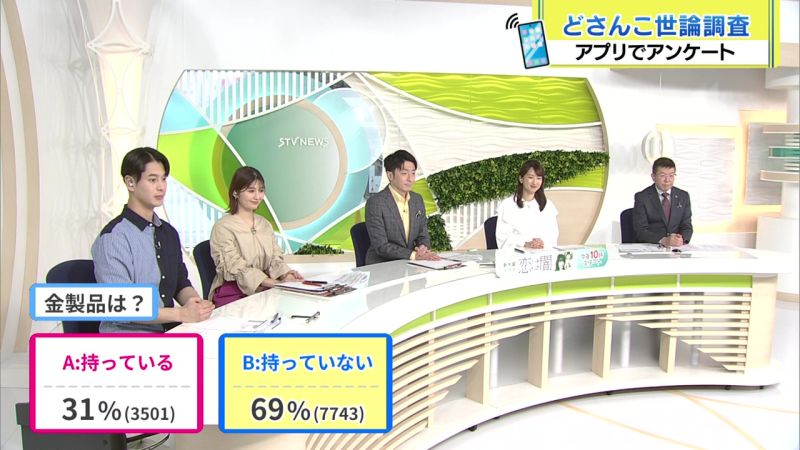4月16日世論調査 4/15(火) 4月15日世論調査 4/17(木) 4月17日世論調査 2025年4月16日(水) きょうは「金製品は?」を調査しました。 結果は… A:『持っている』 31% B:『持っていない』 69% でした。 ご参加ありがとうございました。 4/15(火) 4月15日世論調査 4/17(木) 4月17日世論調査