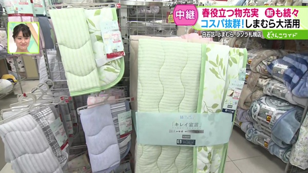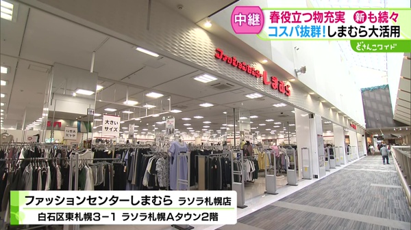 しまむらの中でも道内最大の売り場面積を誇る店舗で、昨日から春物の売り場を拡大しました。今がまさに春アイテムが充実しているタイミングです。