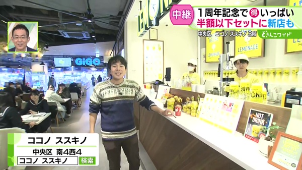 開業1周年を迎えた「ココノ ススキノ」から生中継!新店情報はもちろん、1周年を記念して続々と登場しているお得なサービスや、期間限定メニューもご紹介しました。
