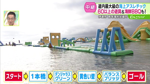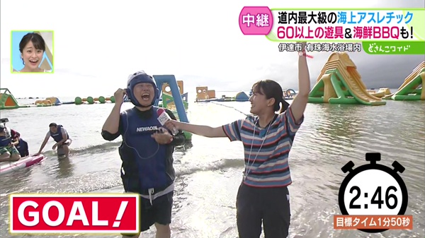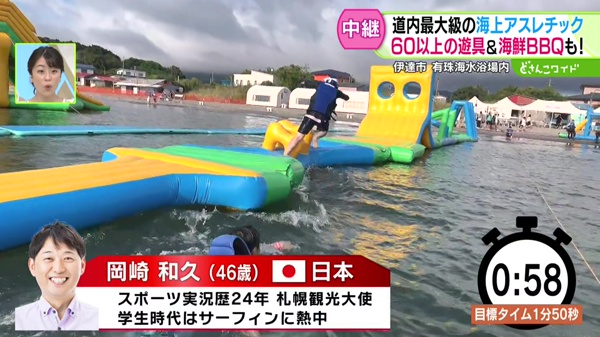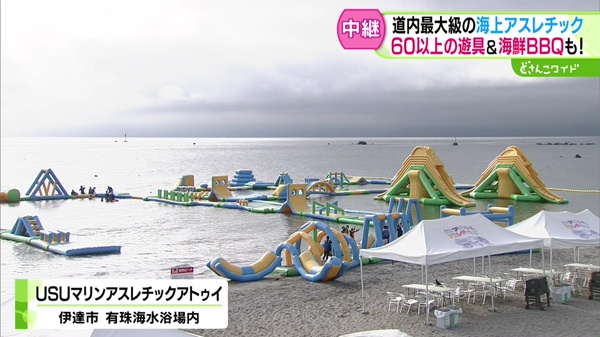 北海道最大級の海上アスレチックに岡崎アナが挑戦!大人も子どもも興奮する海上アクティビティや、海の家でいただける地元の食材を使った絶品グルメなど、全貌をテレビ初生中継でたっぷりお伝えしました。