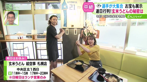ファイターズ選手のお宝も!連日行列の“玄米うどん” 6/26(木) 夏服&グッズがお得!あす“夏セール”開幕 7/4(金) 半世紀グルメ〜江別市民に愛されるレストラン 2025年7月1日(火) ファイターズ選手のお宝も!連日行列の“玄米うどん” 6月にオープンし、早くも大人気という“玄米うどん”のお店から生中継!人気の秘密は、小麦粉を使わず玄米粉を使用したグルテンフリーと、ファイターズ!?一番人気のメニューや限定メニュー等もご紹介しました。 ※お会計はキャッシュレス決済のみ 6/26(木) 夏服&グッズがお得!あす“夏セール”開幕 7/4(金) 半世紀グルメ〜江別市民に愛されるレストラン