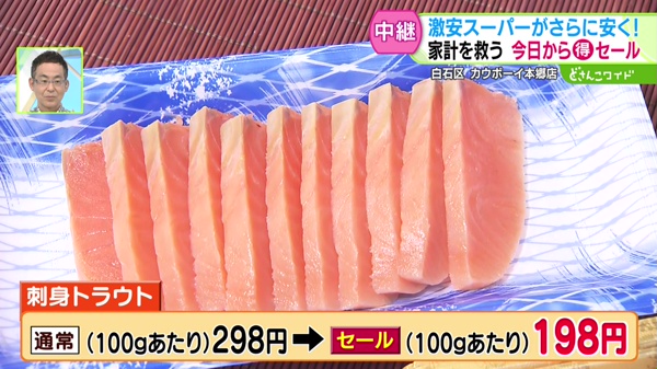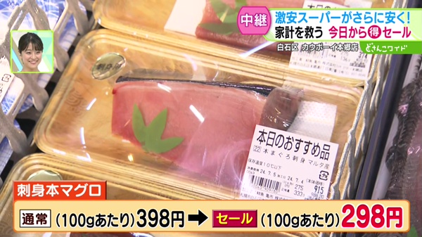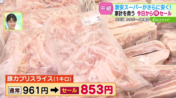 お得なセールが今日からスタートしたスーパーから生中継!“円安に挑戦”というセール情報や、野菜・鮮魚のお得な情報をお伝えしました。