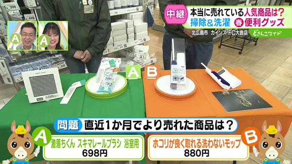 どっちが売れたでショー!春の便利グッズ カインズ編 4/7(月) 花苗や観葉植物が特別セール!カフェもある大型フラワーショップ 4/9(水) 集まれ!愛され商店街 行啓通商店街 2025年4月8日(火) どっちが売れたでショー!春の便利グッズ カインズ編 人気の商品を比較し、どっちがどんな理由で売れたのかをクイズ形式でご紹介する企画「どっちが売れたでショー!」。今回は、幅広いジャンルの生活用品を取り扱う大人気のホームセンター「カインズ」から、アイデア満載な春の便利グッズをご紹介しました。 4/7(月) 花苗や観葉植物が特別セール!カフェもある大型フラワーショップ 4/9(水) 集まれ!愛され商店街 行啓通商店街