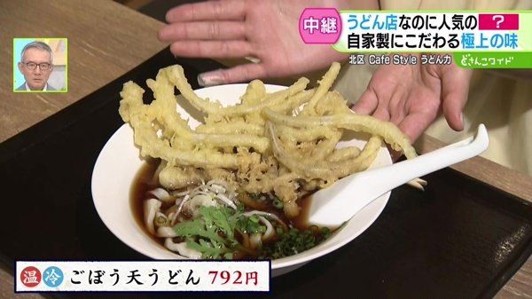 ごぼう天がたっぷりのった人気メニュー。コシが強い麺とこだわりのダシが特徴です。ダシは2種類の削り節を使用し、香りやうまみを考えて厚さを微調整しています。