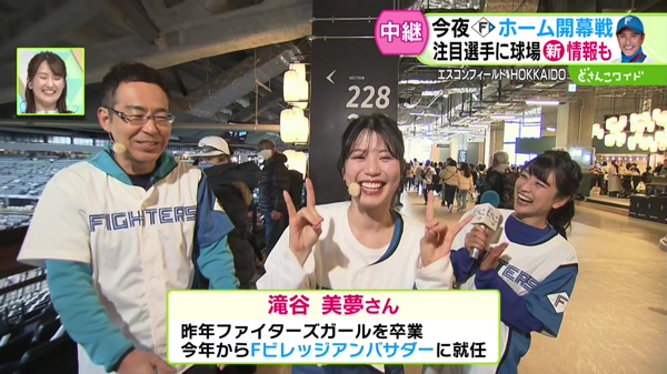 今年からFビレッジアンバサダーに就任し、この春どさんこワイドの新レポーターにも就任した滝谷美夢さん(写真中央)と一緒にご紹介しました。