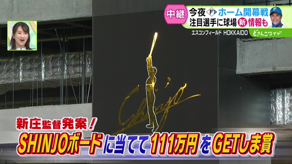 今シーズンから、レフトスタンドに新庄監督発案の「SHINJOボードに当てて111万円をGETしま賞」という企画がスタート。公式戦でこのボードに打球を当てた選手に、敵味方関係なく111万円が贈呈されます!