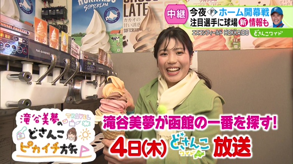 「滝谷美夢のどさんこピカイチ旅」初回は4月4日(木)のどさんこワイドで放送します。舞台は春の函館!ぜひご覧ください!