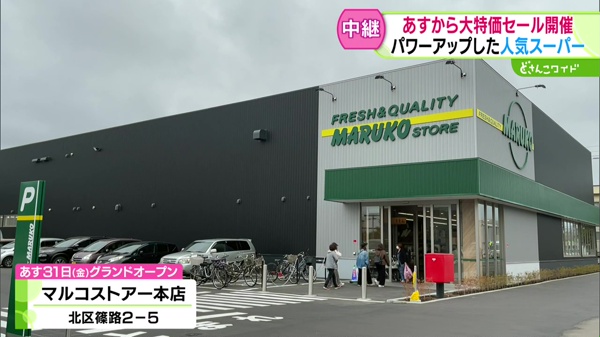 明日5/31(金)にリニューアルオープンする老舗のローカルスーパー“マルコストアー”から生中継!生まれ変わったマルコストアーの魅力と安さをお伝えしました。