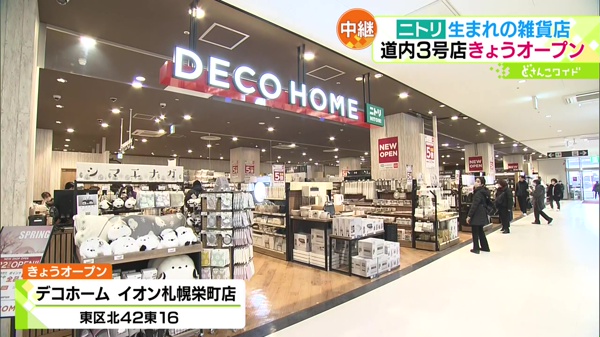きょう道内に3店舗目となる“デコホーム イオン札幌栄町店”がオープンしました。商品数はおよそ4000アイテム、お手頃価格で、機能的な商品が魅力です。