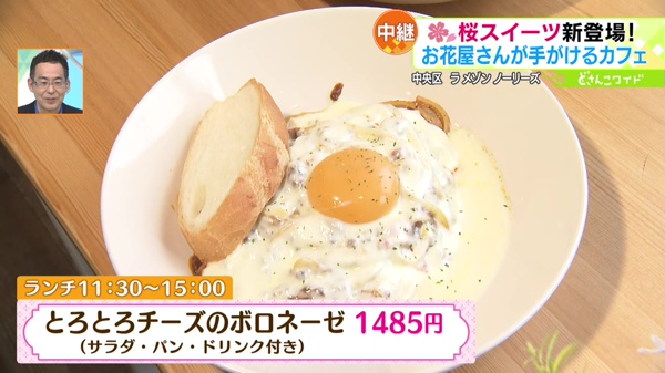 ランチのお食事も人気です。思わず写真を撮りたくなってしまう「とろとろチーズのボロネーゼ」をご紹介しました。