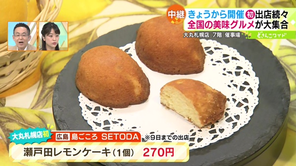 ●【広島】島ごころ SETODA「瀬戸田レモンケーキ」(1個)270円 ※1/9(火)までの出店広島の“瀬戸田レモン”を使用。年間100万個以上も売り上げた広島の絶品スイーツです。