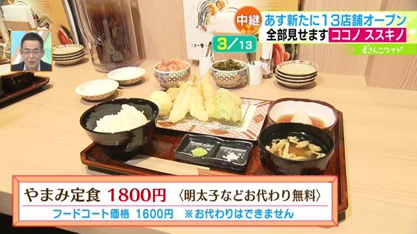 店内で飲食の場合は、辛子明太子・からし高菜・ごはんがお代わり無料です。ココノフードホールで食べる場合、お代わりはできませんが価格が少しお安くなります。