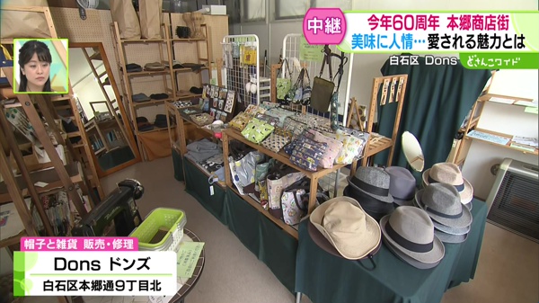 本郷商店街の理事長も務めている宇山誠治さんのお店です。帽子などの修理も行っています。