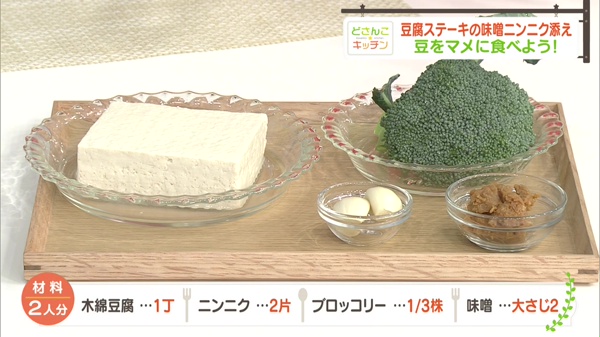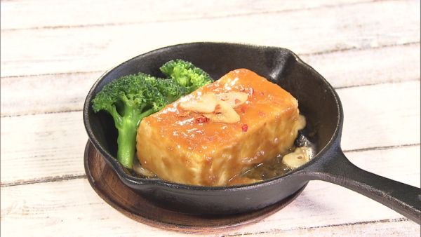 豆腐ステーキの味噌ニンニク添え