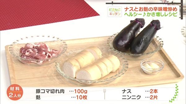 豚コマ切れ肉100g、ナス2本、麩10枚、ニンニク2片、ゴマ油大さじ2杯