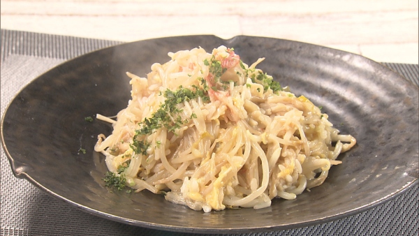 大量のもやしが入ったチャーハンです。もやしの歯ごたえは小気味よいものがありますので、美味しく楽しくいただけます。もやしの根を取るのが大変ですが、取ったときの美味しさは最高ですので頑張ってみましょう!火の通し方も重要です。生でなく、炒め過ぎない様に配慮してお作り下さい。面白い味に出会えますよ。