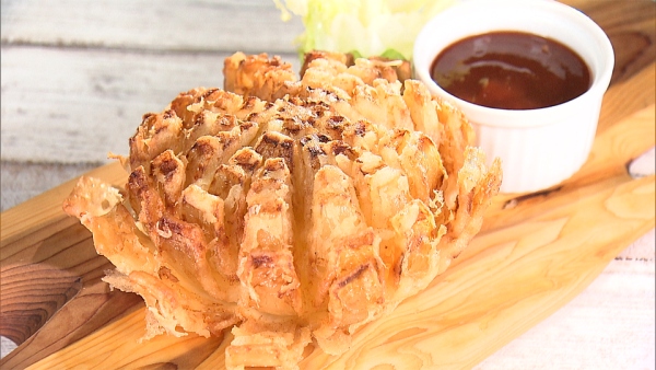 材料は玉ネギだけですが、見た目も楽しい、パーティーやお祝いの時にぴったりのレシピです。ソースのアレンジや、お好みでスパイスを加えると、一層楽しいレシピになります。